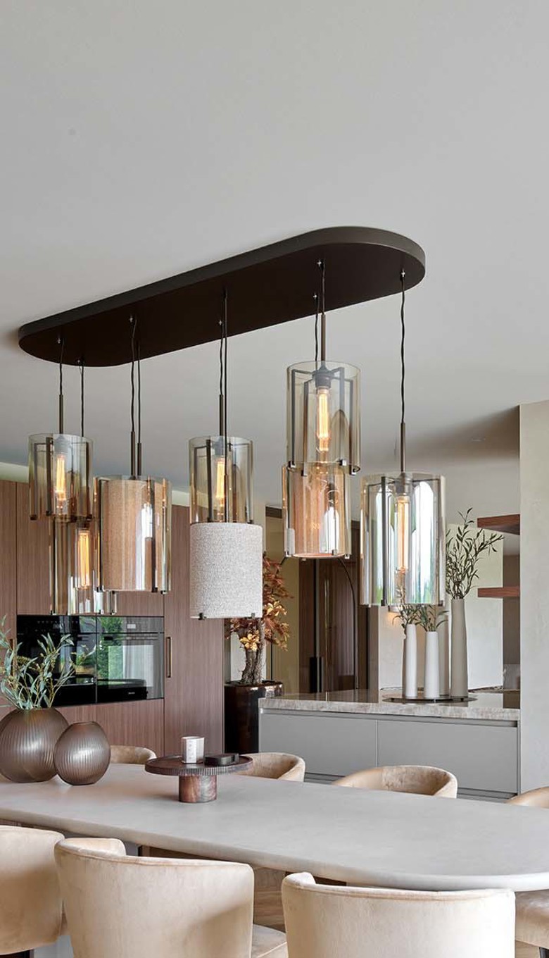 The “PANDORO” series comprises suspension lamps, table lamps and